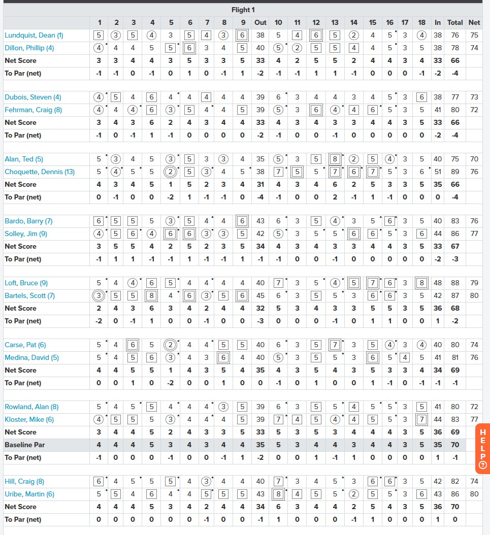 | 3 | Alan, Ted + Choquette, Dennis | -4 | 66 (31/35) | $12.00 |