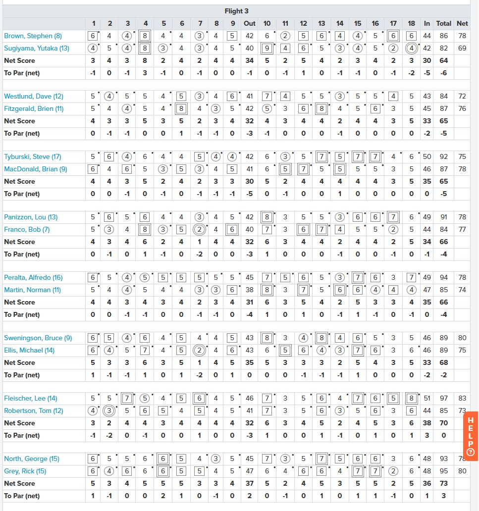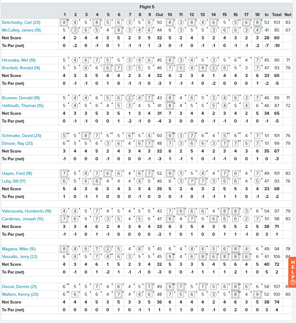 | 2 | Hironaka, Mel + Brackett, Ronald | -5 | 65 (32/33) | $20.00 |